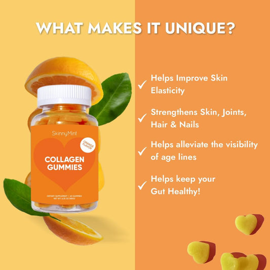 SkinnyMint Collagen Gummies: Natural Orange Flavor, Gluten-Free Hair, Skin & Nails Support - 60 Count (1 Month Supply)