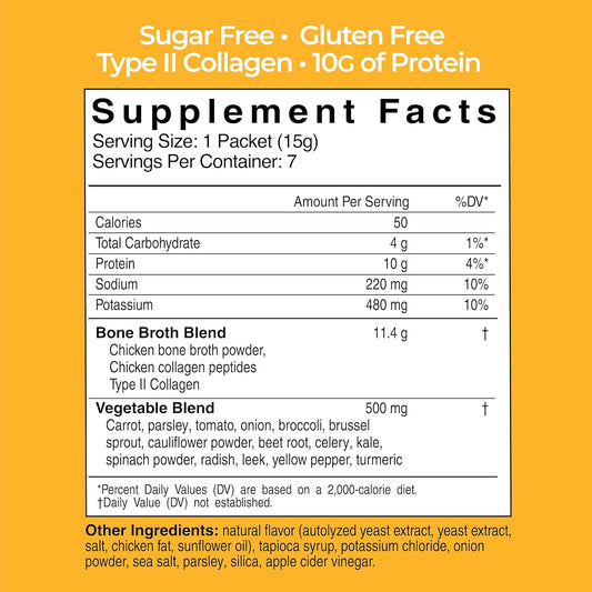 Skinny Broth 7-Day Plan - Instant Chicken Bone Broth with 10g Protein and Collagen Type II for Digestion, Bone, and Joint Health - 4 Pack of 28-15g Packets