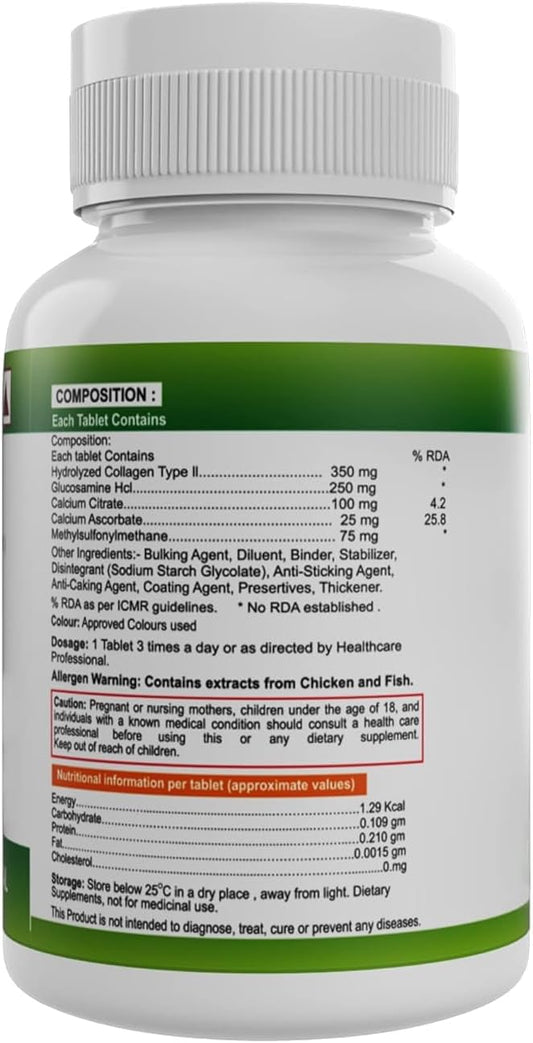 Joint Support Supplement with Collagen Type 2, Glucosamine, Calcium, MSM - 60 Capsules