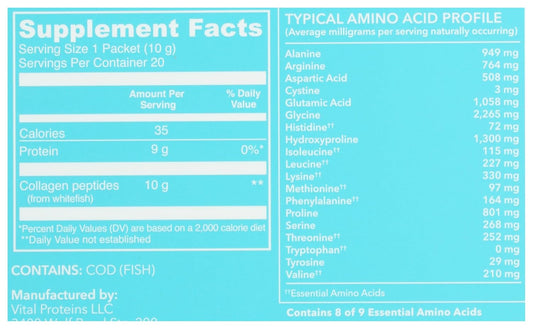 Marine Collagen Peptides for Hair, Skin, Nails, Joints & Immune Support - Unflavored, Gluten Free, Non-GMO - 20 Servings - 0.54 lb