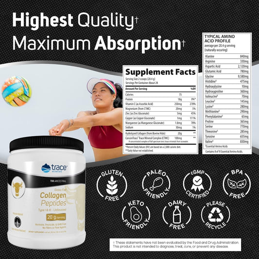 Trace Minerals Collagen Peptides Powder Supplement - Supports Bone, Joint, Hair, Skin, and Gut Health - Unflavored, 571g (28 Servings)