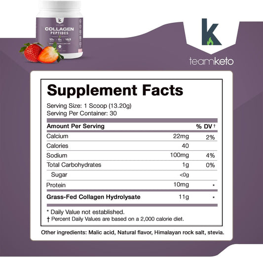 Grass-Fed Collagen Peptides Powder for Hair, Skin, Nails, & Joints - Type 1 & 3 Supplement - Strawberries N'Cream Flavor - 397g - 30 Servings - TeamKeto