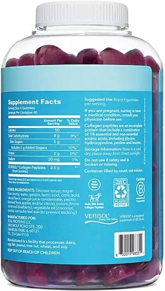 Vital-Proteins Collagen Gummies with 2.5g Verisol Collagen Peptides - 240 Count, Grape Flavor - Premium Collagen Supplement