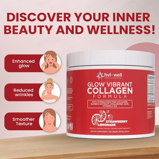 Organic Collagen Peptide Powder Strawberry Lemonade Flavored - Promotes Healthy Bones, Skin, Nails & Hair - Easy to Digest & Sugar-Free - 30 Servings for Women & Men