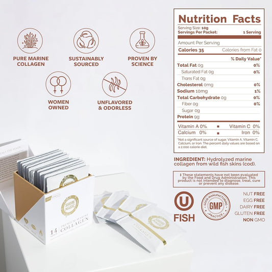 Premium Marine Collagen Powder for Women and Men - Type I II III and IV Hydrolyzed Peptides from Wild Fish, Kosher Certified - 28 Sachets, 10g Each