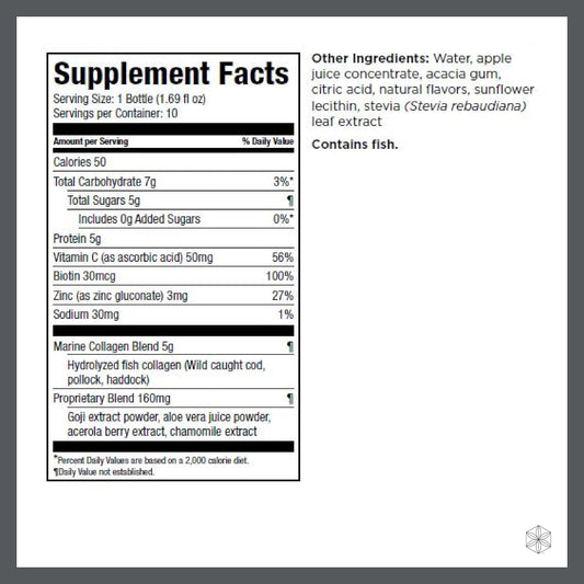 Youthful Appearance Support Drink with Marine Collagen Peptides, Vitamin C, Zinc & Biotin - Isagenix Collagen Elixir - 50 mL