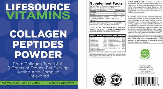 LifeSource Vitamins Collagen Peptides Powder - 45 Servings for Hair, Nail, Skin, Bone & Joint Health - Unflavored Keto & Paleo Friendly