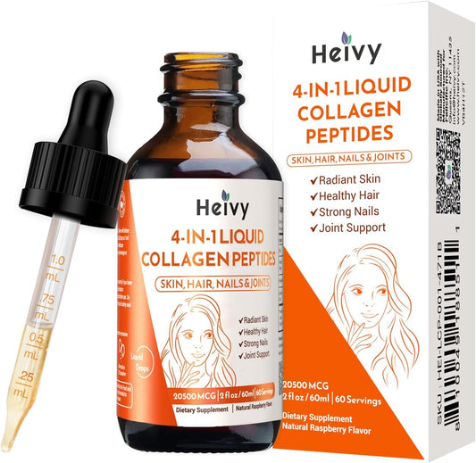 Liquid Collagen Peptides Drops for Radiant Skin, Hair, Nails, Joint Support - Raspberry Flavor - 2 fl oz