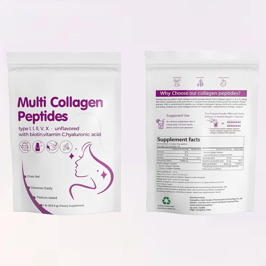 Vrixlanua Multi Collagen Protein Powder with Vitamin C, Hyaluronic Acid, Biotin - Unflavored Hydrolyzed Peptides - Type I, II, III, V, X - Easy Dissolve - 1lb
