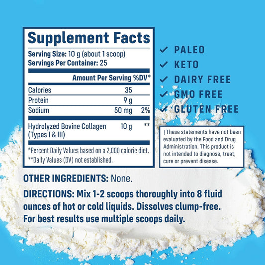 Premium Collagen Peptides Powder Protein - 16oz, 45 Servings - Skin, Bone, Joint Support - Type I & III Grass Fed Supplements - Keto Friendly Amino Acids for Men and Women
