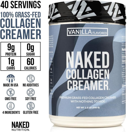 Vanilla Collagen Coffee Creamer - Dairy-Free & Gluten-Free - Supports Hair, Skin, Nails - 40 Servings