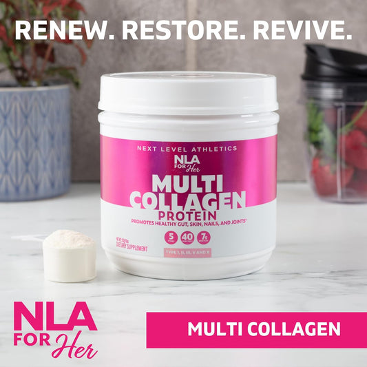 NLA for Her Multi Collagen Powder - 40 Servings, Unflavored - 5 Types of Food Sourced Collagen - Type I, II, III, V, and X - Keto Friendly - Supports Stronger Hair, Skin, Nails, Bones, Joints & 7g Protein