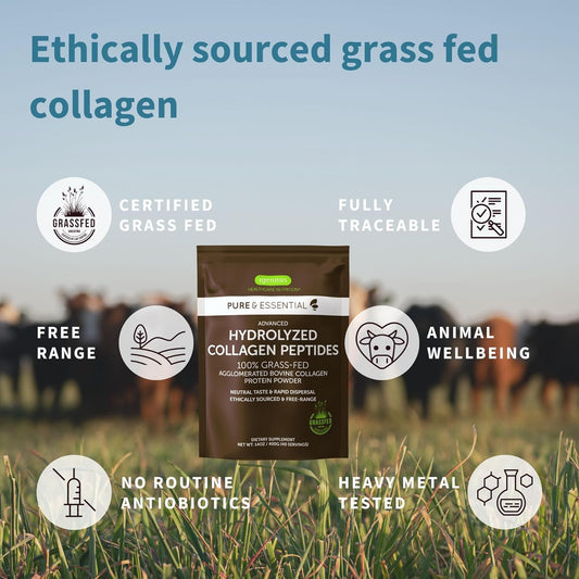SKINNLY Multi Collagen Powder Protein: Hydrolyzed Peptides for Skin, Hair, Nails & Gut Health - Grass-Fed, Gluten-Free - 8oz
