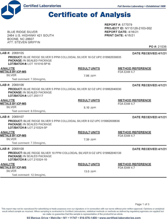 Blue Ridge Silver 5 ppm Colloidal Silver 32 oz - Natural Immune Support Supplement for Health