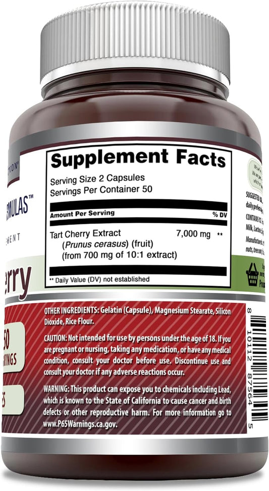 High Potency Tart Cherry Extract Capsules - 7000mg Per Serving - Non-GMO & Gluten Free - 100 Count - Made in USA by Amazing Nutrition