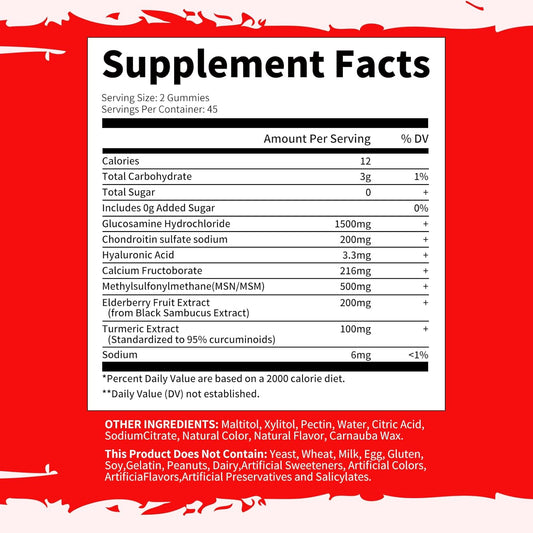 1500mg Extra Strength Glucosamine Chondroitin Gummies with MSM for Joint & Immune Support - Adults, Men & Women