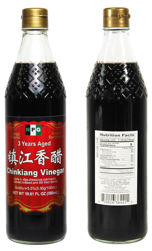 Chinese Black Vinegar 19.61 Fl Oz - 3 Years Aged Zhenjiang Rice Vinegar for Cooking - Perfect for Dumplings, Sushi, Salad, and Stir Fry