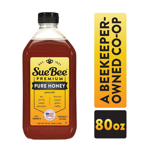 80 Ounce (5 Pound) Sue Bee Pure Premium Honey From USA Beekeepers - Natural, Unfiltered Honey for Baking, Cooking, and More