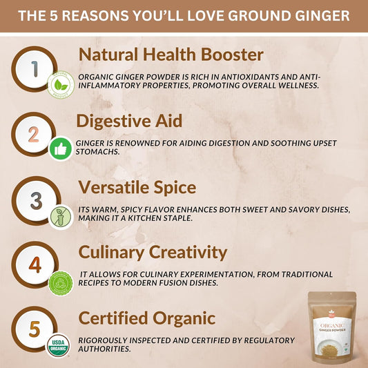8 oz. Organic Ginger Root Powder - Freshly Ground from Raw Indian Ginger - Ideal for Baking, Beverages, and Cooking - 100% Pure USDA Certified Organic - Non-GMO & Kosher Compliant