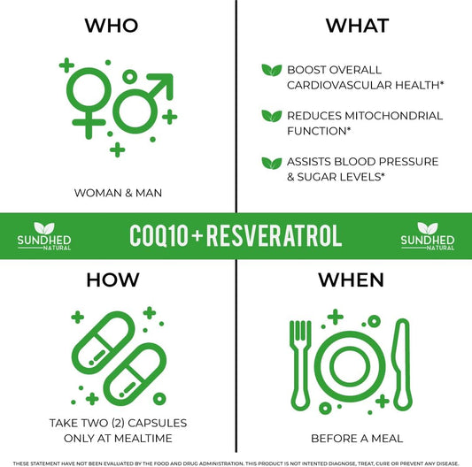 Sundhed Natural CoQ10 Capsules with Resveratrol - Antioxidant Supplement for Power and Health