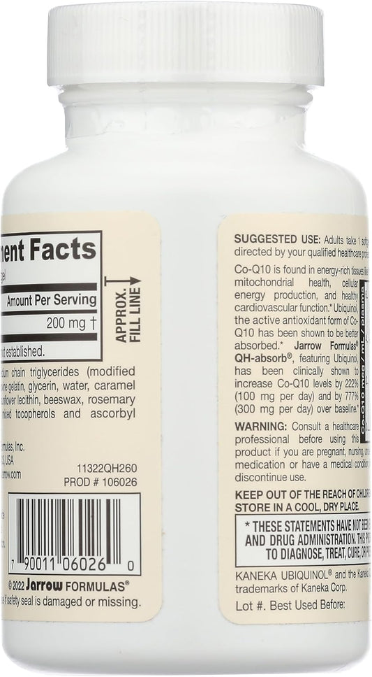 High Absorption Coenzyme Q10 Supplement - 200mg QH-Absorb Softgels - Antioxidant for Energy & Heart Health - 60 Servings