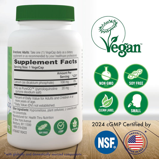 Pack of 3 PureQQ PQQ Supplement 20mg - Pyrroloquinoline Quinone for Mitochondrial Health, Vegan, Non-GMO, Gluten & Soy Free by Health Thru Nutrition