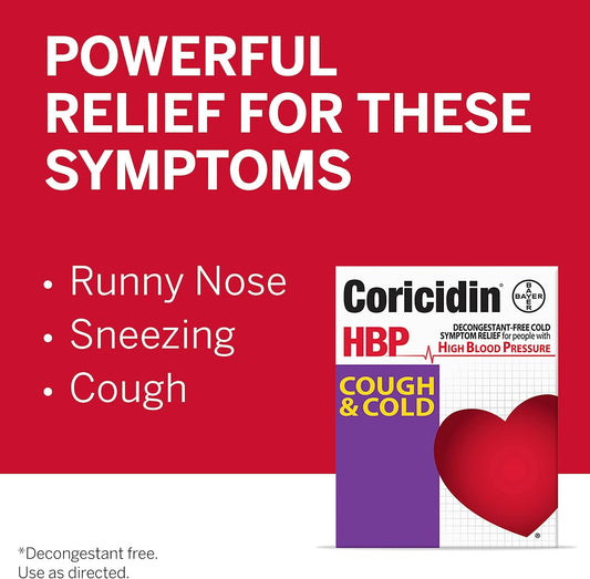 Coricidin HBP Decongestant-Free Cough and Cold Medicine - 16 Count for High Blood Pressure Relief and Cold Symptoms