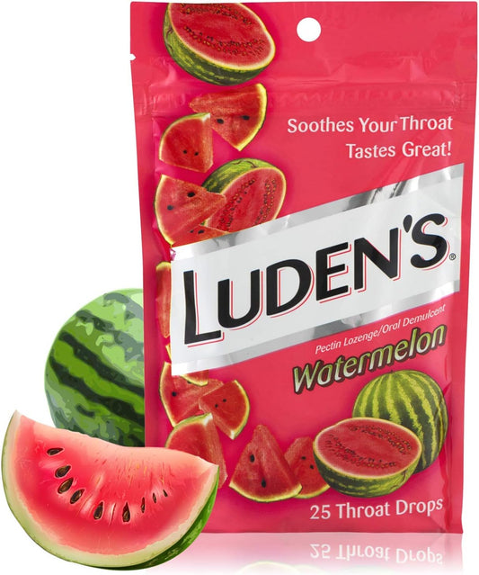 Ludens Watermelon Cough Throat Drops, Pectin Lozenge, Oral Demulcent - 2 Packs of 25-Count Drops