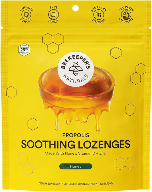 Beekeeper's Naturals Immune Support Honey Cough Drops with Vitamin D, Zinc & Propolis - Throat Soothing Lozenges (14 Ct)