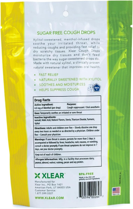 Xlear Xylitol Sugar-Free Cough Drops with Natural Honey Lemon Flavor - 30 Count Pack - For Adults and Kids - Sore Throat Relief & Dry Mouth Lozenges