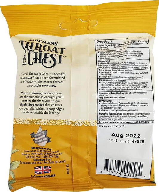 Jakemans Honey Lemon Cough Drops Lozenges - Soothing Relief for Cough, Sore Throat, Seasonal Distress - Liquid Drop Shape - 30 Lozenges (3 Pack)