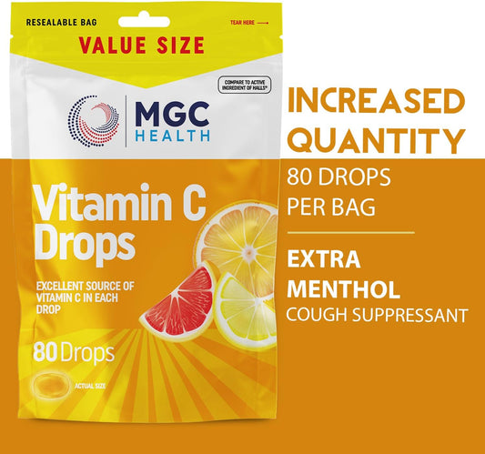 MGC HEALTH Vitamin C Drops for Adults and Children - Sore Throat Relief Lozenges (480 Count) Pack of 6