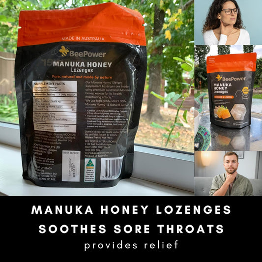 Manuka Honey Lozenges MGO 500+ - Ginger Lemon Flavor, 40 Cough Drops for Dry, Sore Throat - 6.7 Oz