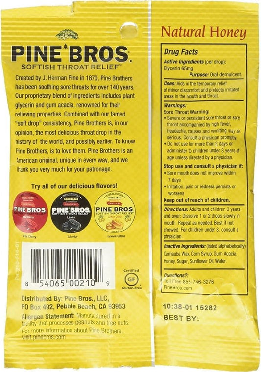 Pine Bros. Softish Throat Drops Value Pack - Natural Honey Flavor, 32 Count per Pack (Pack of 3)