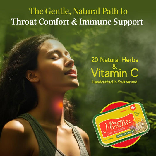 Montisse Swiss Herb Pastilles - Sugar Free Cough Drops with Vitamin C & 20 Herbs - Traditional Swiss Recipe - Low Calorie - 6 Pack