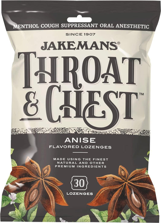Jakemans Throat & Chest Menthol Cough Suppressant Lozenges with Anise Flavor - 4 Pack of 30 Lozenges