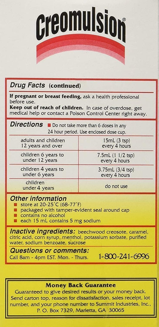 8-Pack Creomulsion Cough Medicine Adult Formula 4 oz - Soothes Coughs and Relieves Throat Irritation
