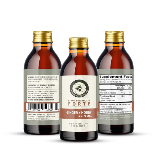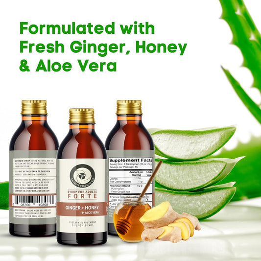 Naturgin Syrup Forte for Adults with Ginger, Honey, Aloe Vera - 5 oz (150ml) - Natural Immune Support and Soothing Relief