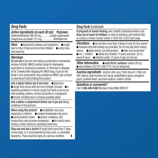 Cherry Flavored Nighttime Cough Syrup for Adults - Cold and Flu Relief, Runny Nose and Sneezing Medicine for Better Sleep - 8oz Bottle