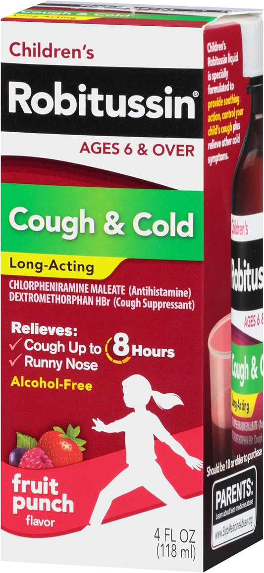 Robitussin Children's Cough & Cold Long-Acting Liquid Fruit Punch 4 oz - Pack of 2 for Lasting Relief