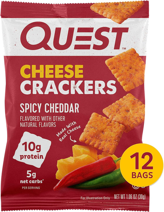 Quest Nutrition Spicy Cheddar Blast Cheese Crackers - 12 Count, 10g Protein, Low Carb, Real Cheese Snack