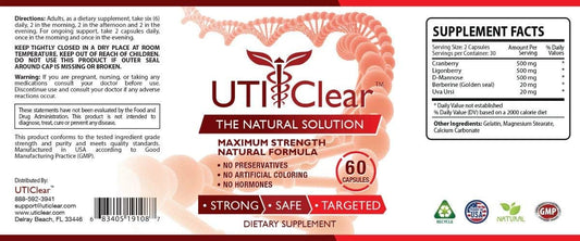 UTI Clear Supplement with Cranberry, Lingonberry, D-Mannose, Berberine & Uva Ursi - Urinary Tract Support - 1 Bottle