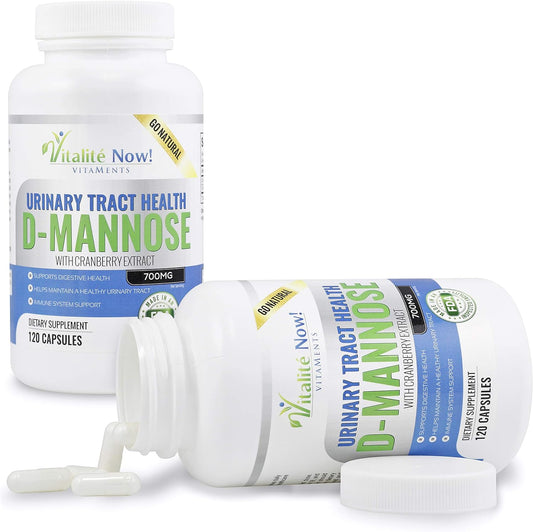 High Strength Pure D-Mannose with Cranberry Extract - UTI Support - Digestive & Immune Health - 700mg - Non-GMO - 120 Pills by Vitalité Now