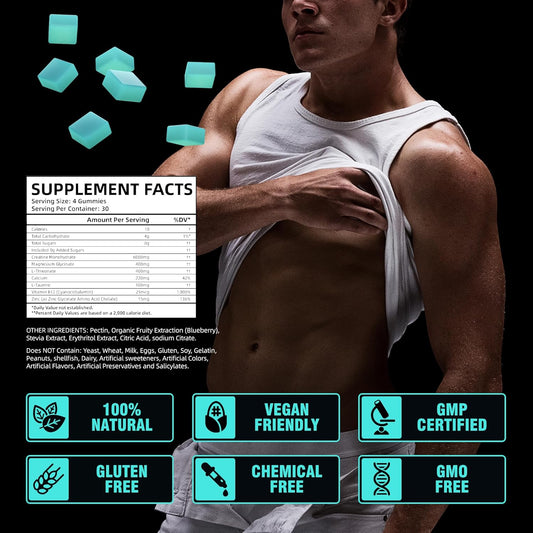 BAKAKOUL Creatine Monohydrate Gummies - 120 Sugar Free Gummies for Muscle Support & Energy Boost with Magnesium, L-Threonate, L-Taurine, Vitamin B12 - 2 Pack for Men & Women