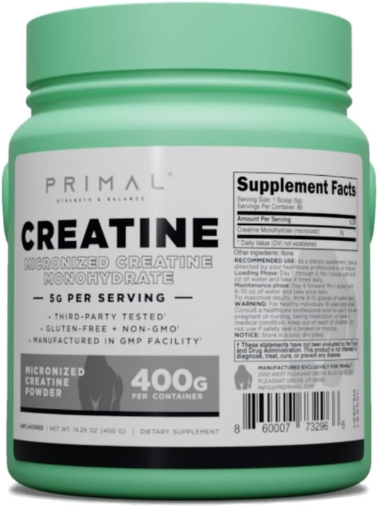 Unflavored Micronized Creatine Monohydrate Powder (400g) for Muscle Development | Pre-Workout & Recovery Supplement with 5g Creatine Monohydrate per Serving