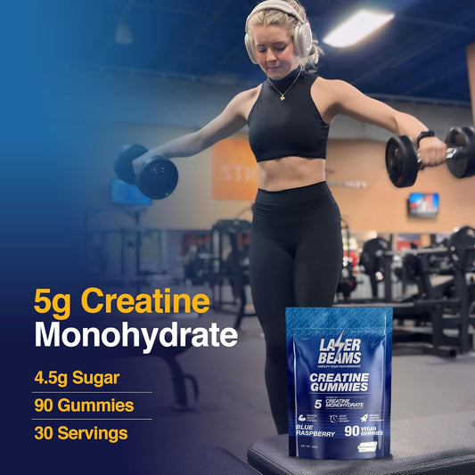 Vegan Blue Raspberry Laser Beams Creatine Gummies - 5g Creapure Creatine - Muscle Strength & Mental Focus - 90 Gummies