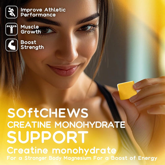 Openovomins 6400mg Creatine Monohydrate Soft Chews with L-Taurine & Vitamin B12 - Sugar Free Pineapple Supplement for Men & Women