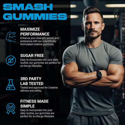 Vegan Creatine Monohydrate Gummies 5g - Sugar-Free (120ct) - Pre & Post Workout Supplement - Blue Raspberry Flavor