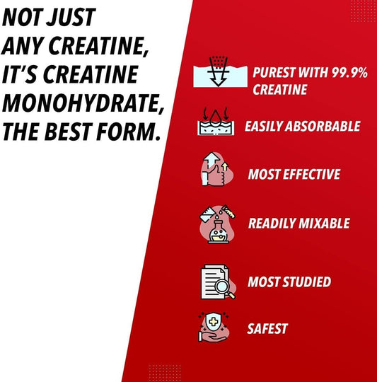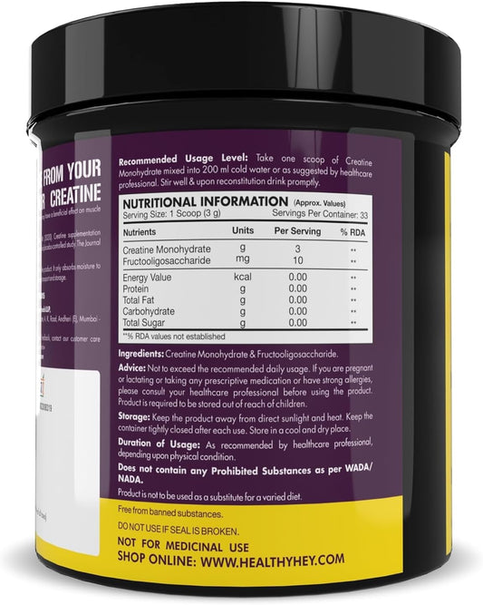 Premium Unflavoured Sports Creatine Monohydrate Powder - 100g, 33 Servings for Muscle Building & Performance