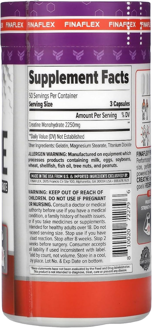 150 Capsules of FINAFLEX Pure Micronized Creatine Monohydrate for Strength, Size & Performance - 100% Pure - 50 Servings